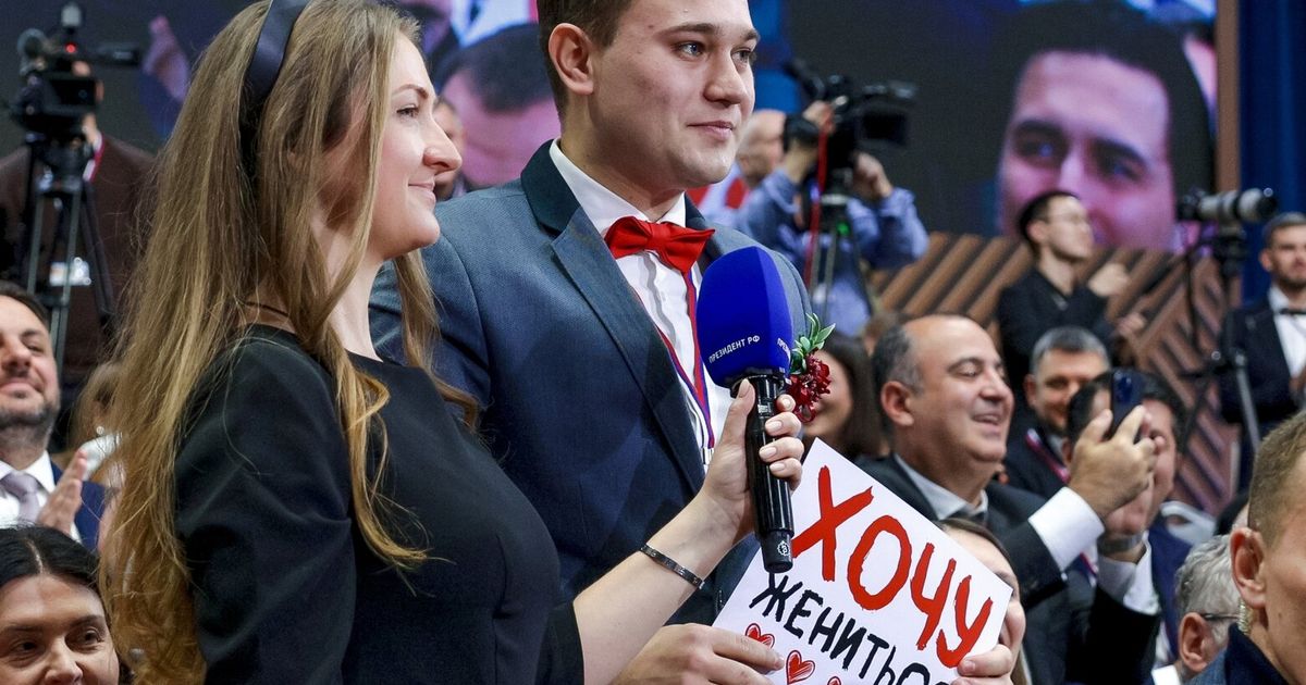 Bazhanov did actually have a question for Putin — about greater support for young families. Later in the 4 1/2-hour news conference, one of the anchors passed along the news that Bazhanov’s girlfriend had said yes. Putin promptly quipped about collecting money for the wedding.